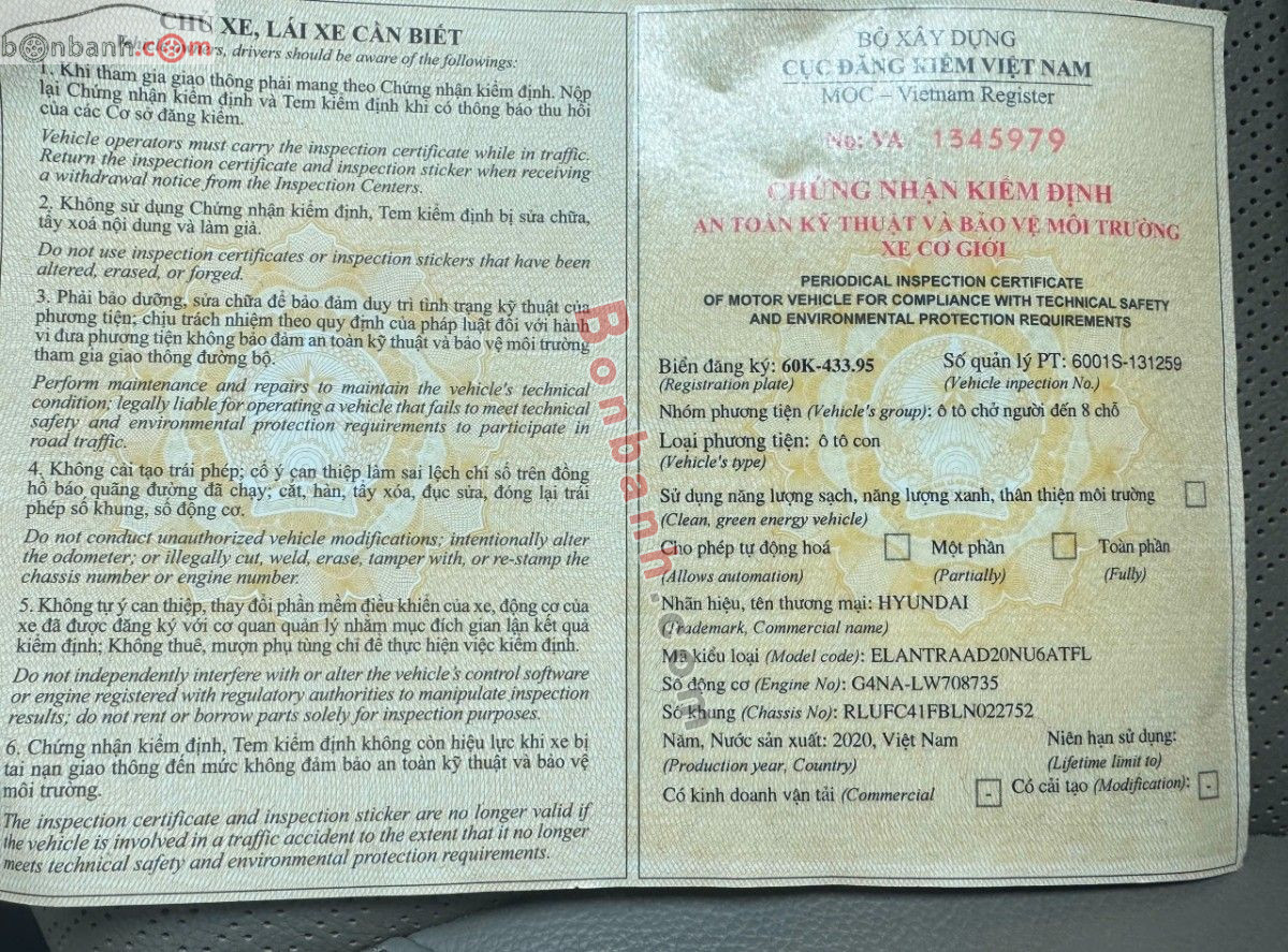 Bán ô tô Hyundai Elantra 2.0 AT - 2020 - xe cũ