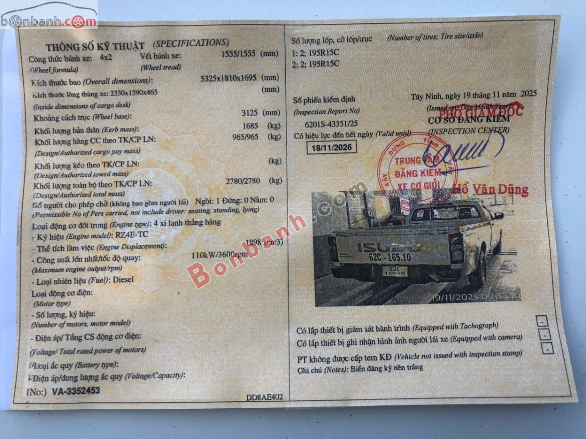 | Trọng lượng xe | 0 |