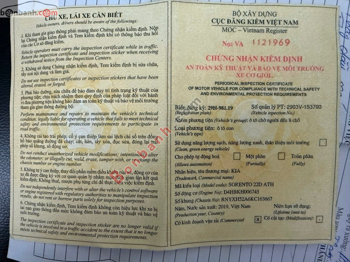 • Đời xe 2019