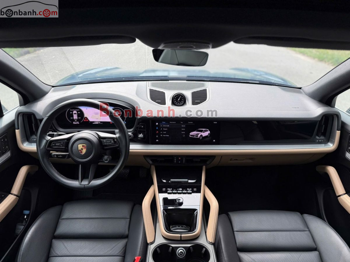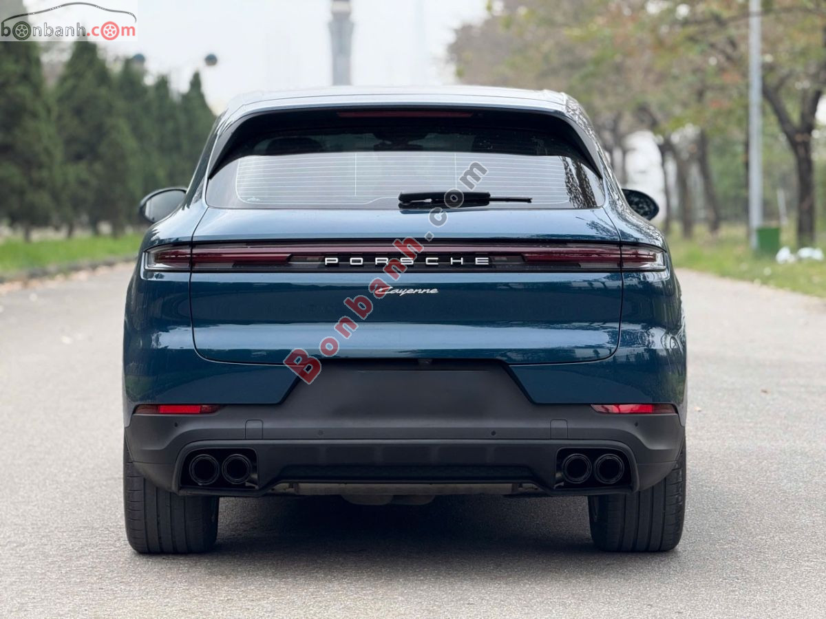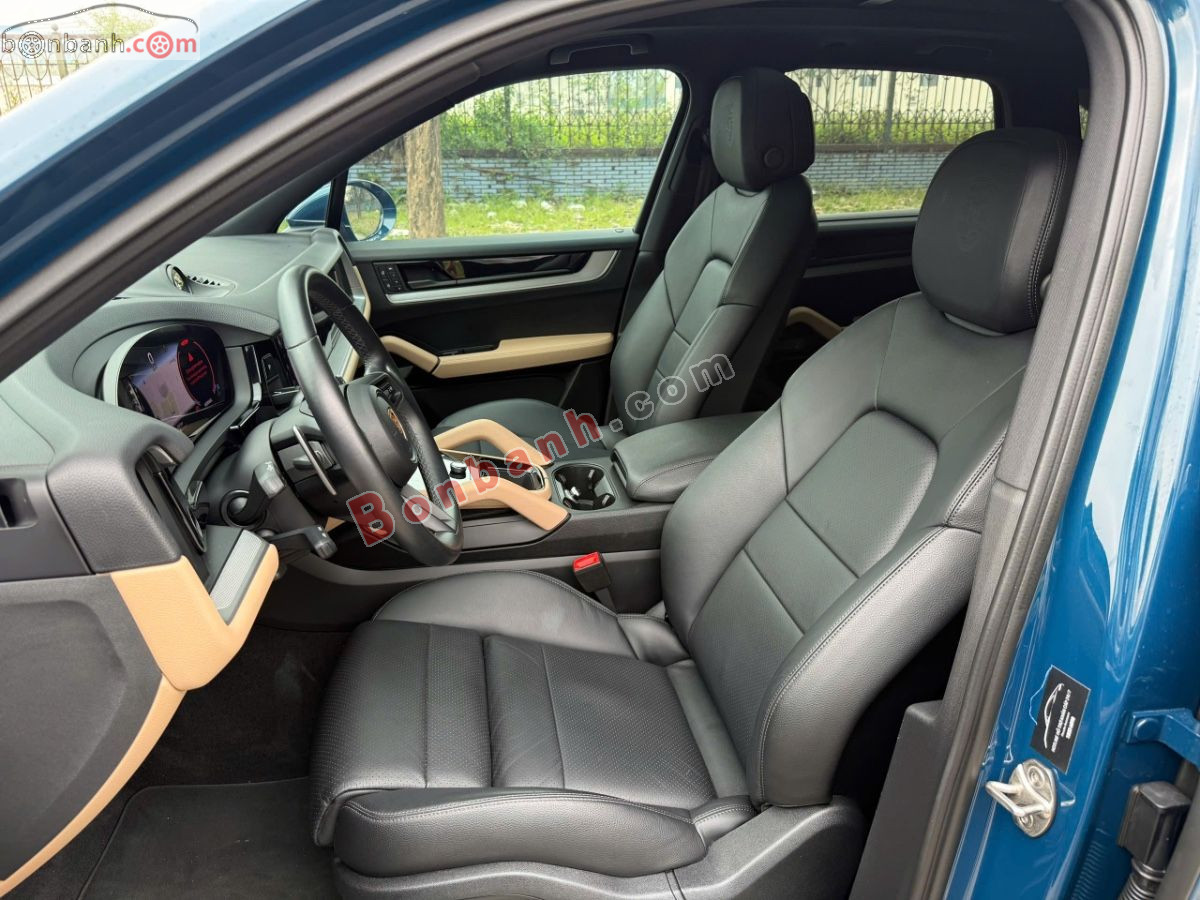 Porsche Cayene model 2024 màu xanh ánh kim nội thất đen. Tên cá nhân odo 9.000 mile